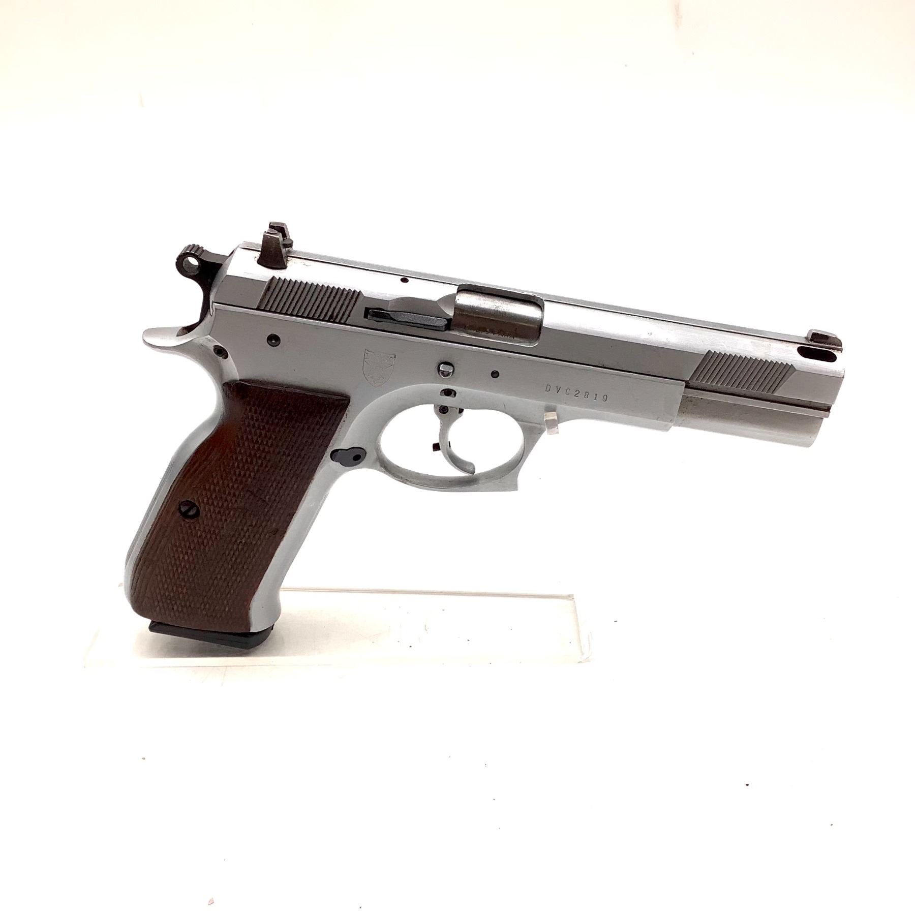 Tanfoglio Ultra Model IPSC Approved Semi Auto Pistol 9mm 4.75" Ported Barrel Stainless, Restricted. Includes one magazine, wood grips. Barrel and slide are ported. This is a restricted firearm.