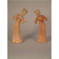 Tang Dynasty - pair of pottery figures of dancing girls, with traces of original paint 8in. £300-500