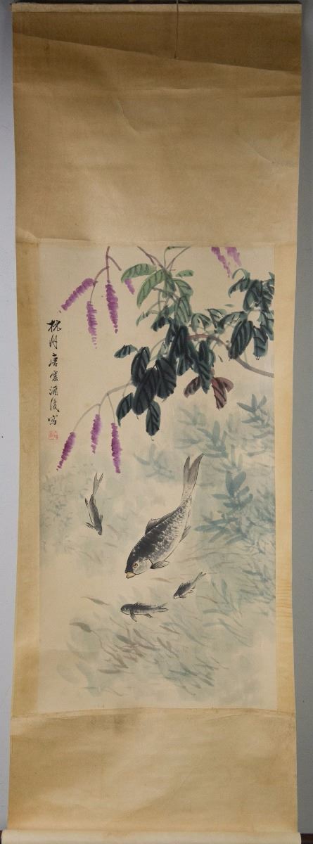 Swimming fishes, Chinese ink and watercolour on paper; signed Tang Yun (1910-1993) and inscribed with one artist seal; hanging scroll; 87 cm x 46 cm; Provenance: T. Ng Collection Toronto