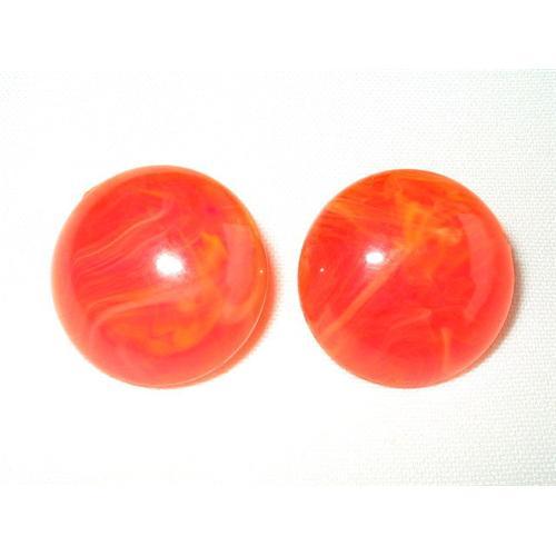 </font></strong>Fabulous pair of bright tangerine swirled lucite button style earrings from Germany. Goldtone fittings, marked Germany, have patina consistent with age and could be polished but I have left in original condition. Measure 1-1/8" inches in diameter. Clip on. Color shown in pictures is very close to actual color.</font>