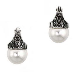 Sterling Silver Faux Pearl and Marcasite Earrings Item#: 11302815