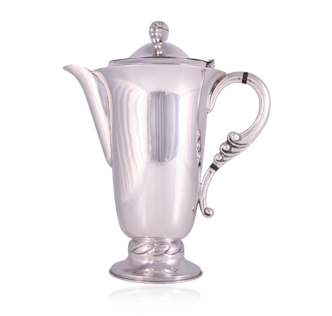Tango aceves coffee and tea service, Mexico, c. 1965 | STERLING SILVER, Blossom Set includes teapot, coffee pot, sugar bowl with lid, creamer, waste bowl and tray. Signed with impressed manufacturers marks to each element: Aceves Sterling 925 Mexico San Francisco with touch marks. Tray weighs 2483 grams and measures 27" x 17.25", coffee pot weighs 1096 grams and measures 10.5" x 8.5", teapot weighs 984 grams and measures 7"x 8", creamer weighs 562 grams and measures 6" x 7", sugar bowl with lid weighs 474 grams and measures 6" x 5", waste bowl weighs 231 grams and measures 3.5" x 4.25". CONDITION: Excellent Vintage condition, small scratches due to light use on tray. One small ding to tray. Valued between $18,000-$20,000.