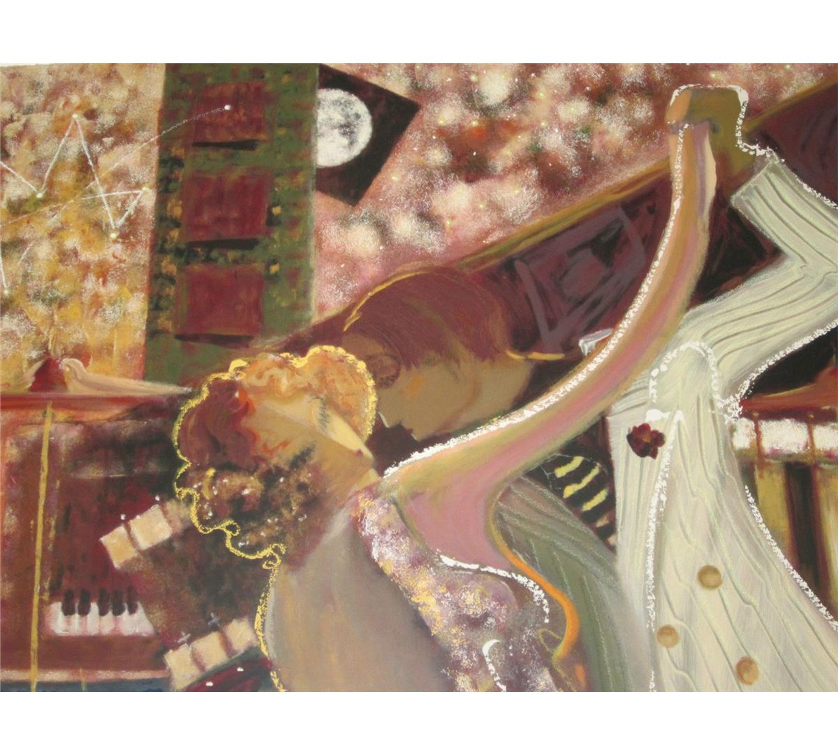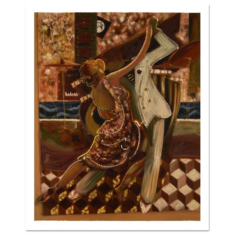 Tango II is a limited edition serigraph on paper by Sabzi, numbered and hand signed by the artist! Includes Certificate of Authenticity! Measures approx. 39" x 48" (border), 35" x 44" (image).