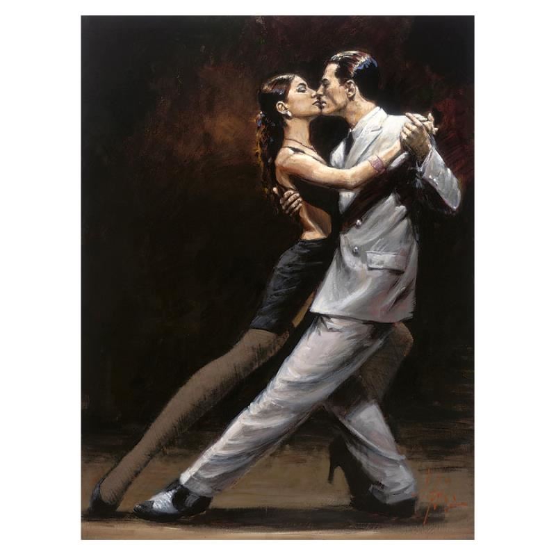"Tango in Paris" is a hand embellished limited edition giclee on stretched canvas by Fabian Perez. The piece is numbered and hand signed by the artist and comes with a Certificate of Authenticity. Measures approx. 40" x 32" (image). Please allow 5 additional business for items that include canvas stretch or framing.