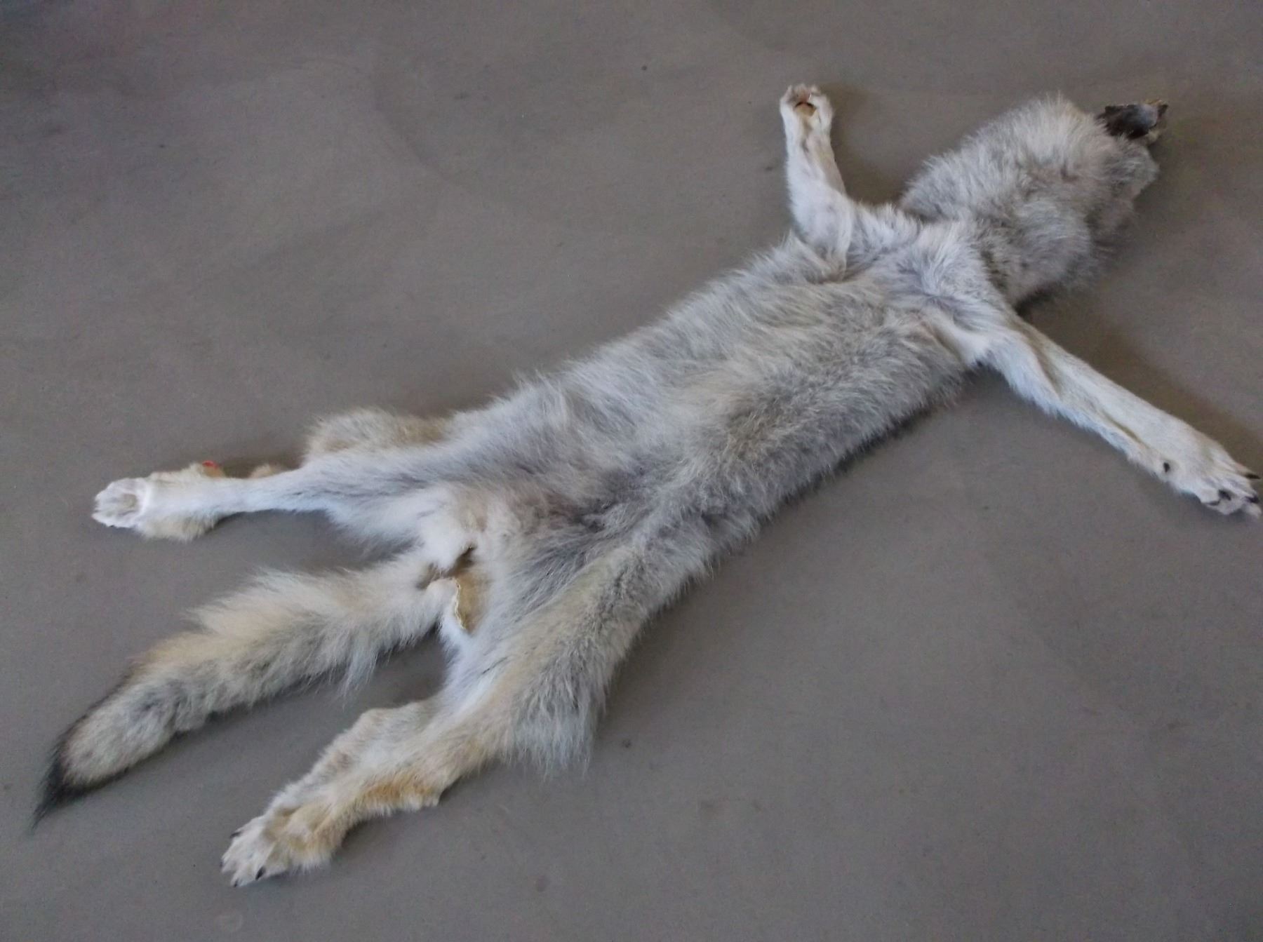 Tanned Montana Wolf Hide- Good Fur - Feet and Claws Left On- Nose to Tail 80"- Montana Fish and Game Tagged- All Legal