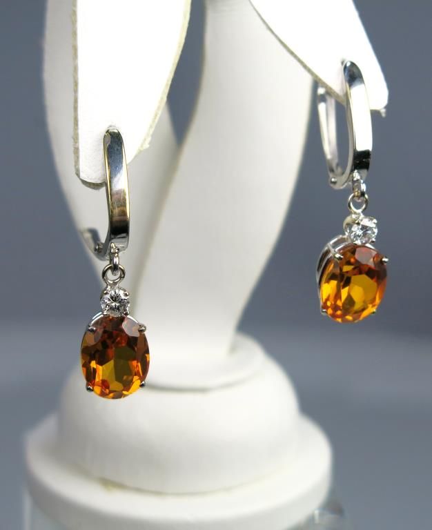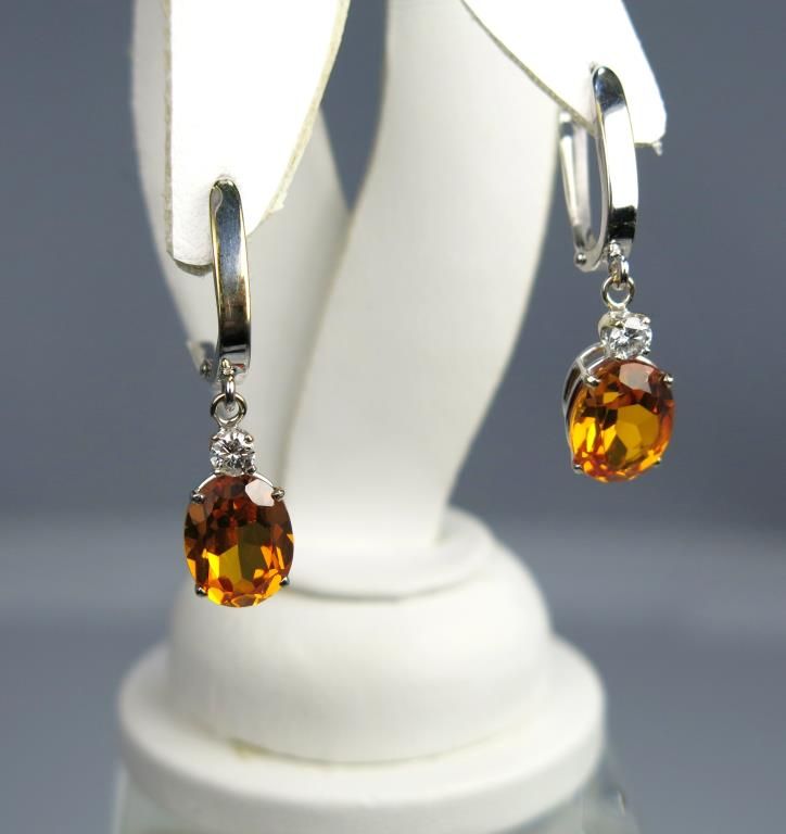 Tantalizing Citrine and Diamond Dangle Earrings with 8.00 carats of fine oval cut citrine accented with 2 round brilliant cut diamonds weighing 0.30 carats of G-H colors and SI clarity set in 14 karat white gold. Retail $1,600-$2,000 Estimate $1,000-$1,400 Nice.