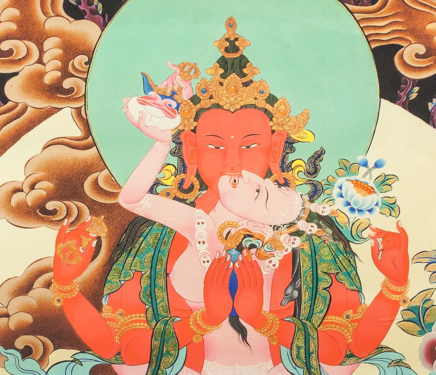 Print on cloth. Featuring Tantric deity. 67 x 88 cm
