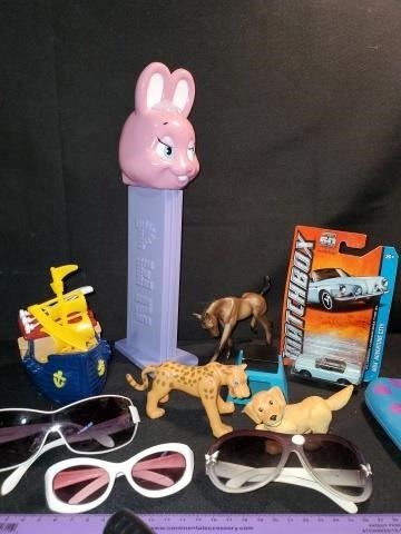 Hand held games, sunglasses, LARGE PEZ Dispenser