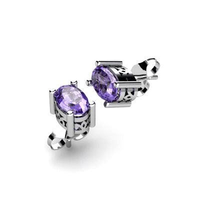 Tanzanite 0.96ctw Earring 14kt White Gold **|**|** Mainstone: Tanzanite ; Total CTW: 0.96 ; Shape: Oval ; Gem Size: 6x4mm ; Metal / Purity: 14kt White Gold ; Gem Count 1: 2 Oval Cut ; MSRP: $1200