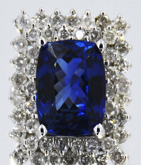 14kt White Gold 9.17 Approx grams including, 8.23 ctw Tanzanite Excellent Cushion cut 2.46 ctw Diamond H color SI clarity, size 7, Appraised Retail Value$42,000.00