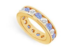 Celebrate your commitment & devotion with this endless circle of gems. Round blue tanzanites alternate with brilliant-cut diamonds in a 14K yellow gold channel-setting. This eternity band has a total gem weight (TGW) of 4.00 ct. Being a December birthstone; it is an ideal gift for any December born.