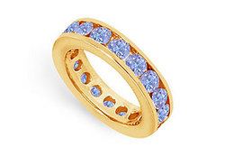 Celebrate your commitment & devotion with this endless circle of gems. Round intense tanzanites are channel-set in a 14K yellow gold. This eternity band has a total gem weight (TGW) of 3.00 carat. Being a December birthstone; it is an ideal gift for any December born.