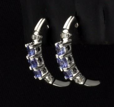 In 14K white gold, there are two .10ct round, and four .06ct round tanzanite gemstones with excellent color and clarity. These earrings also contain eight 1/2pt round diamonds. 1.8g