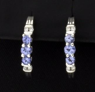 In 14K white gold, there are two .10ct round, and four .06ct round tanzanite gemstones with excellent color and clarity. These earrings also contain eight 1/2pt round diamonds. 1.8g
