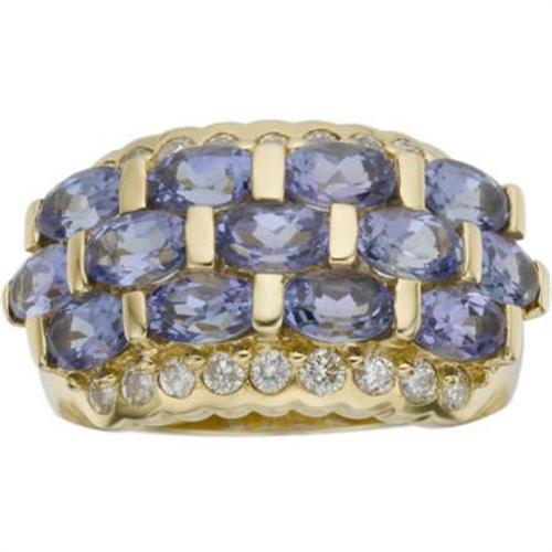 <B>Tanzanite, Diamond, Gold Ring</B></I> The ring features oval-shaped tanzanite weighing a total of approximately 3.50 carats, enhanced by full-cut diamonds weighing a total of approximately 0.35 carat, set in 14k yellow gold. Gross weight 7.30 grams.<BR><I>*Note: Size 6-3/4 (sizeable)</B></I><BR><BR><b>Shipping:</b> Miscellaneous Collectibles, Smal (<a target="_blank" href="http://www.heritageauctions.com/common/shipping.php">view shipping information</a>)