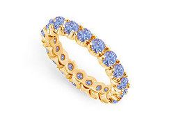 Round tanzanite are beautifully 4-prong set all around this 14K yellow gold circle. This eternal circle symbolizes your never ending hope in life. This eternity band has a total gem weight (TGW) of 2.00 carat. Being a December birthstone; it makes a great gift for a December born.