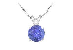 A round prong set created tanzanite with total gem weight (TGW) of 1.00 carat is delicately attached to a V shape high polished .925 sterling silver. It comes with standard 16 inches silver chain. This gemstone solitaire pendant give a glamour look.