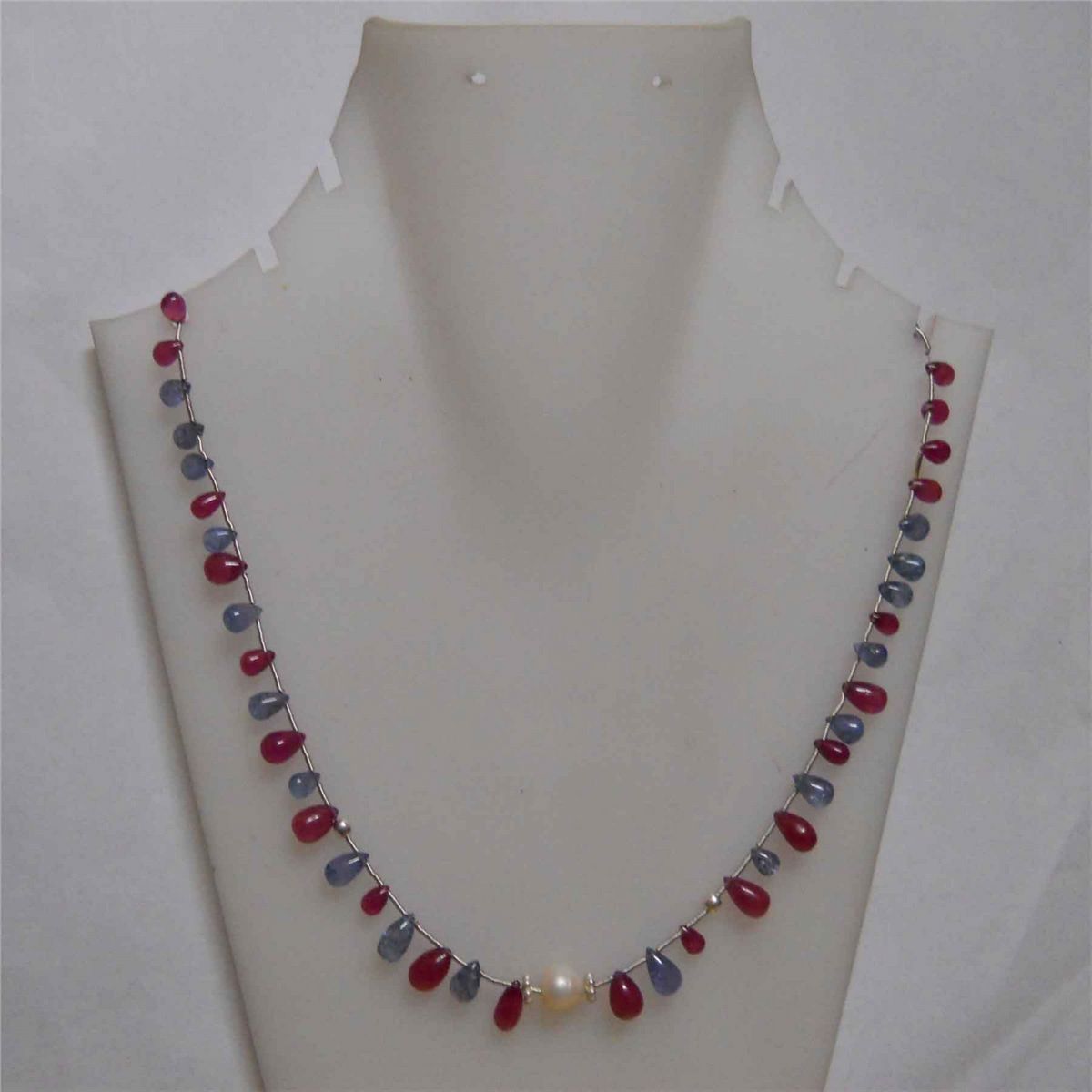 Tanzanite,Ruby And Pearl 87.90 CTW Necklace in Silver