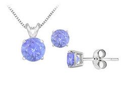 Beautiful matching round prong set created tanzanites stud earrings and solitaire pendant set makes a perfect gift for someone special. Both the earrings and pendant set are crafted in .925 sterling silver rhodium and has a total weight (TGW) of 2.00 carats. These earrings come with push back lock and also solitaire pendant with a standard 16 inches sterling silver chain.