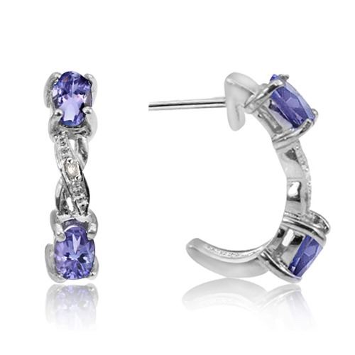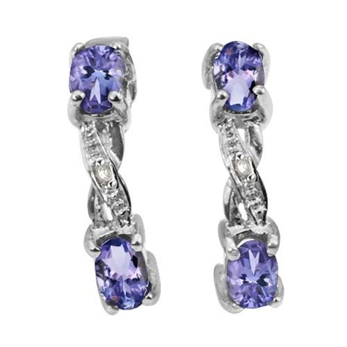 Over 1/2 carat genuine Tanzanite gemstone earrings with 0.01ctw diamond accents set in criss cross sterling silver mountings with friction backs. 2.2g