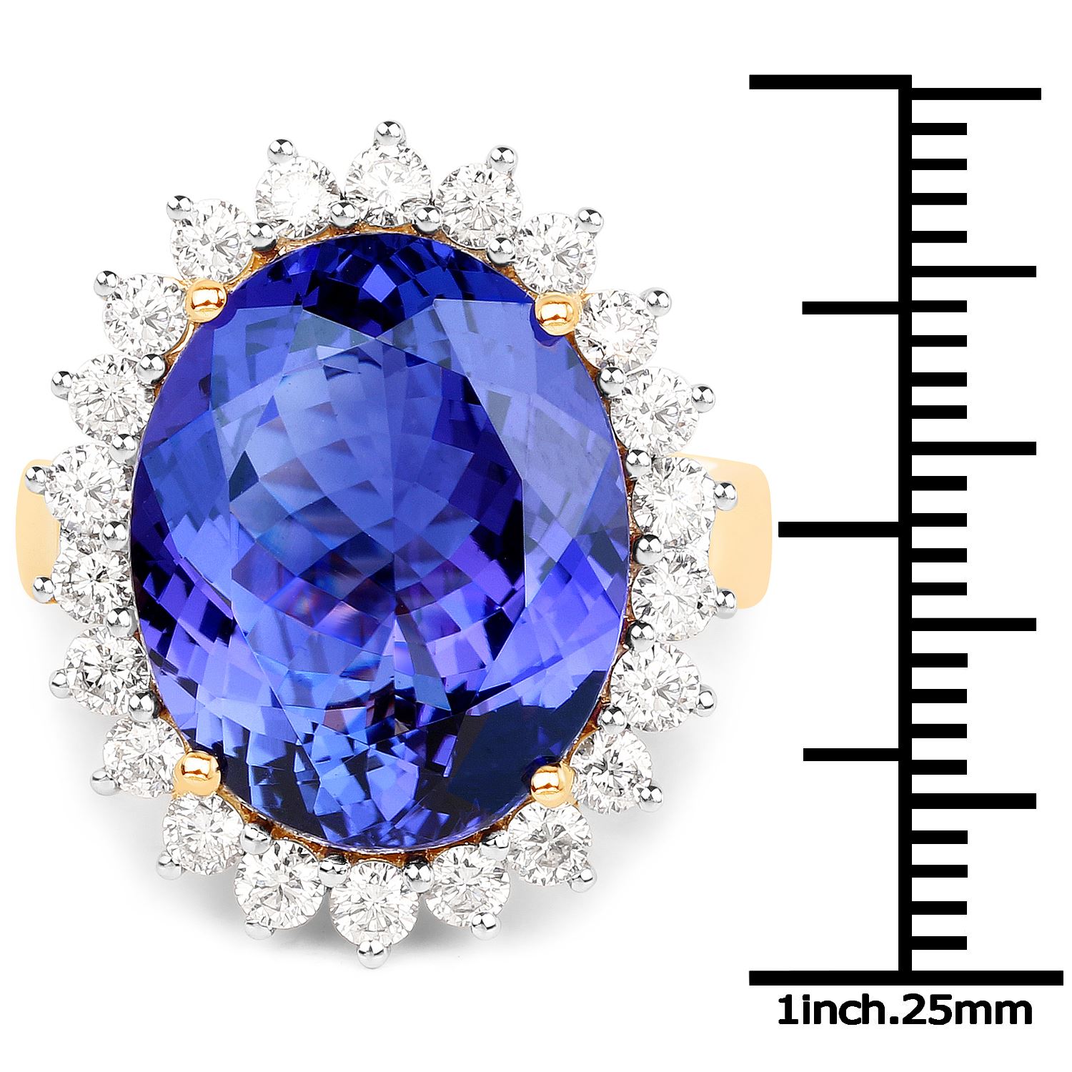 DESCRIPTION DETAIL: Statement Ring - Tanzanite With Diamond Halo In 18K Yellow Gold Setting