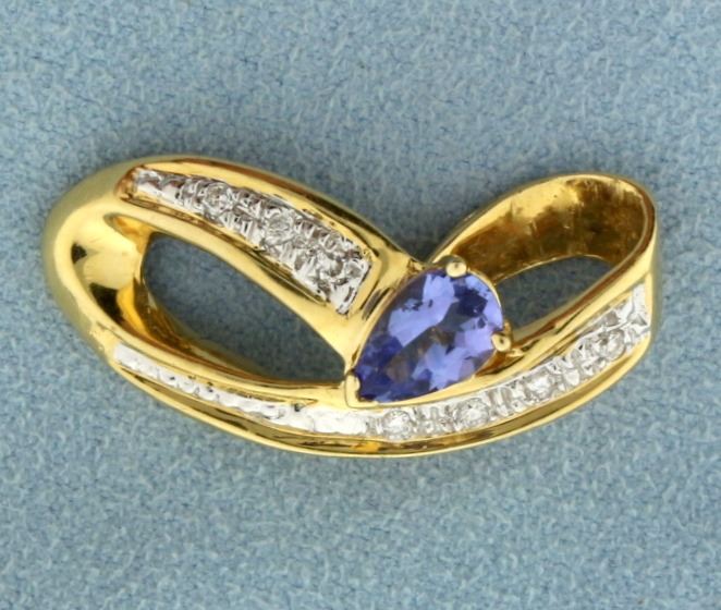 Fantastic 14k yellow gold slide for an omega or neck chain. Contains 7 brilliant cut high quality diamonds, 0.15 ct TW and a pear shaped Tanzanite, 8mm x 5mm, that has an approximate weight of 1 carat and has a beautiful deep purple blue color. The slide will fit a 6mm Omega or chain or smaller. This piece is like new condition. 5.1g