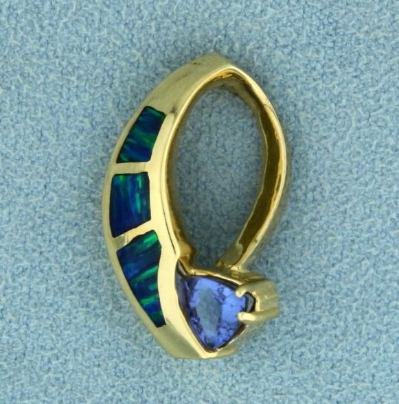 In 14k yellow gold, with a 6mm Trillion cut Tanzanite with excellent color and clarity. 1 inch long. 5.0g.