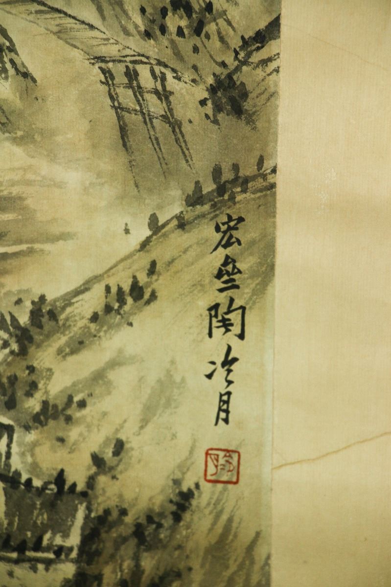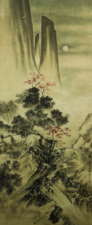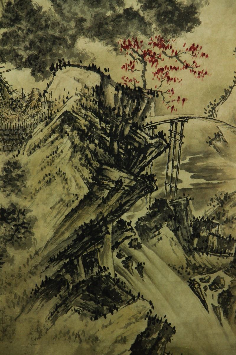 Landscape; Chinese ink and watercolour on paper; hanging scroll; signed Tao Lengyue and inscribed with one artist seal; 119 cm × 50 cm