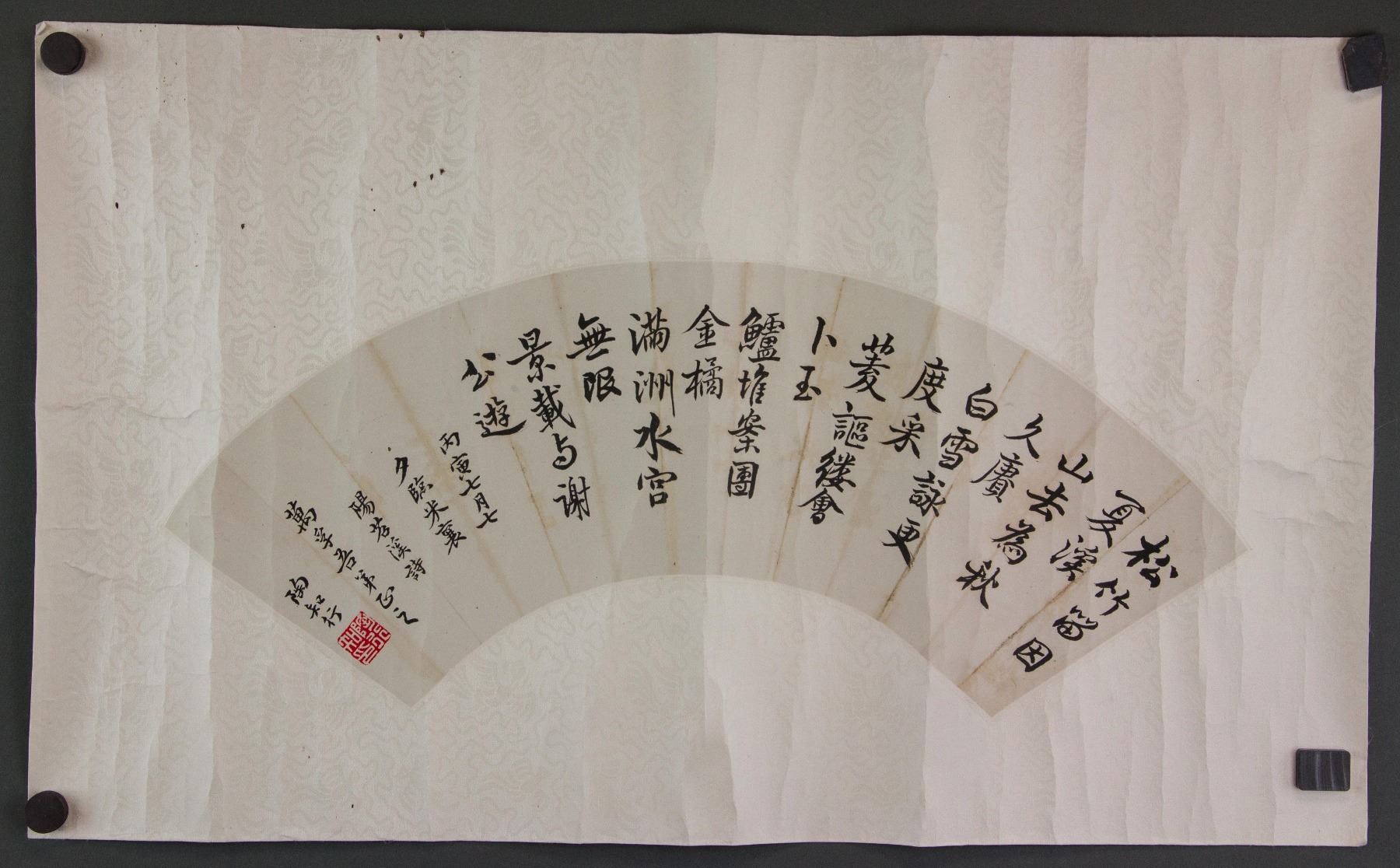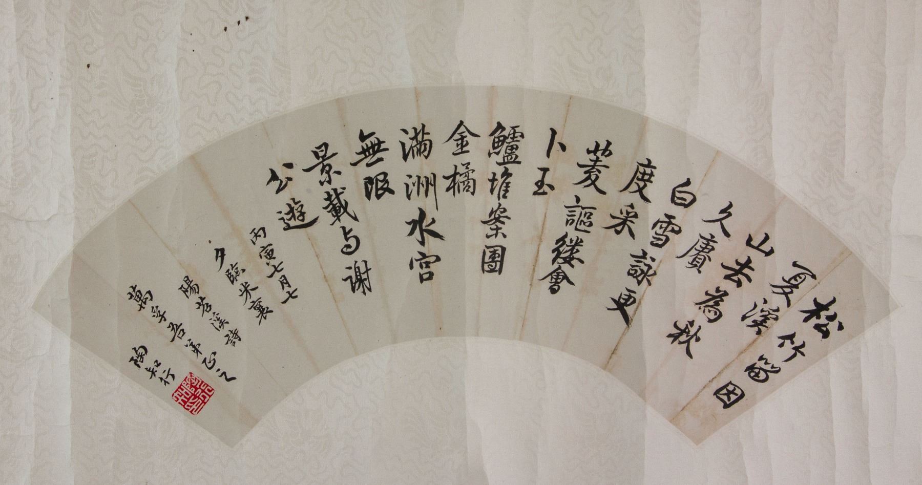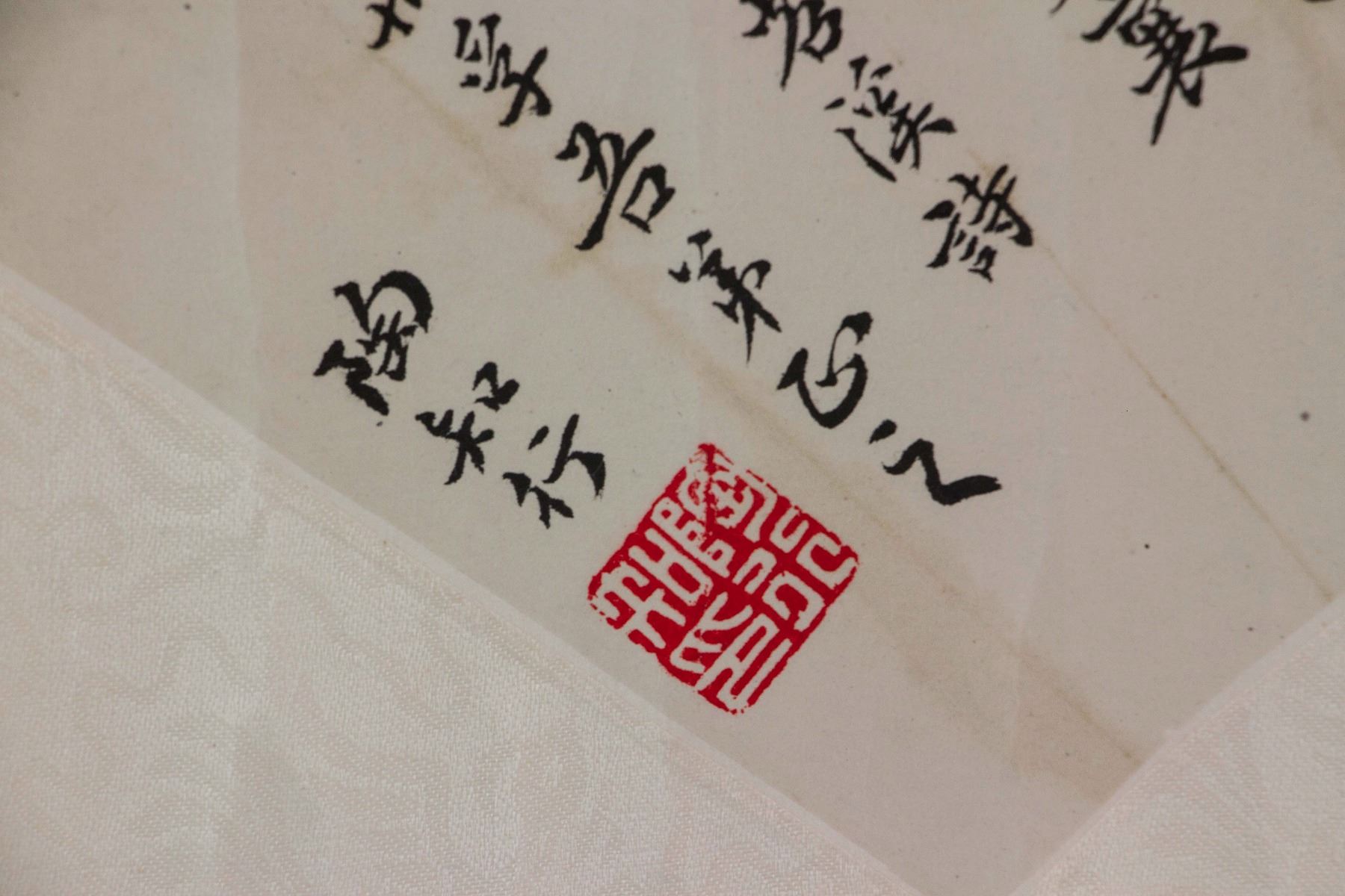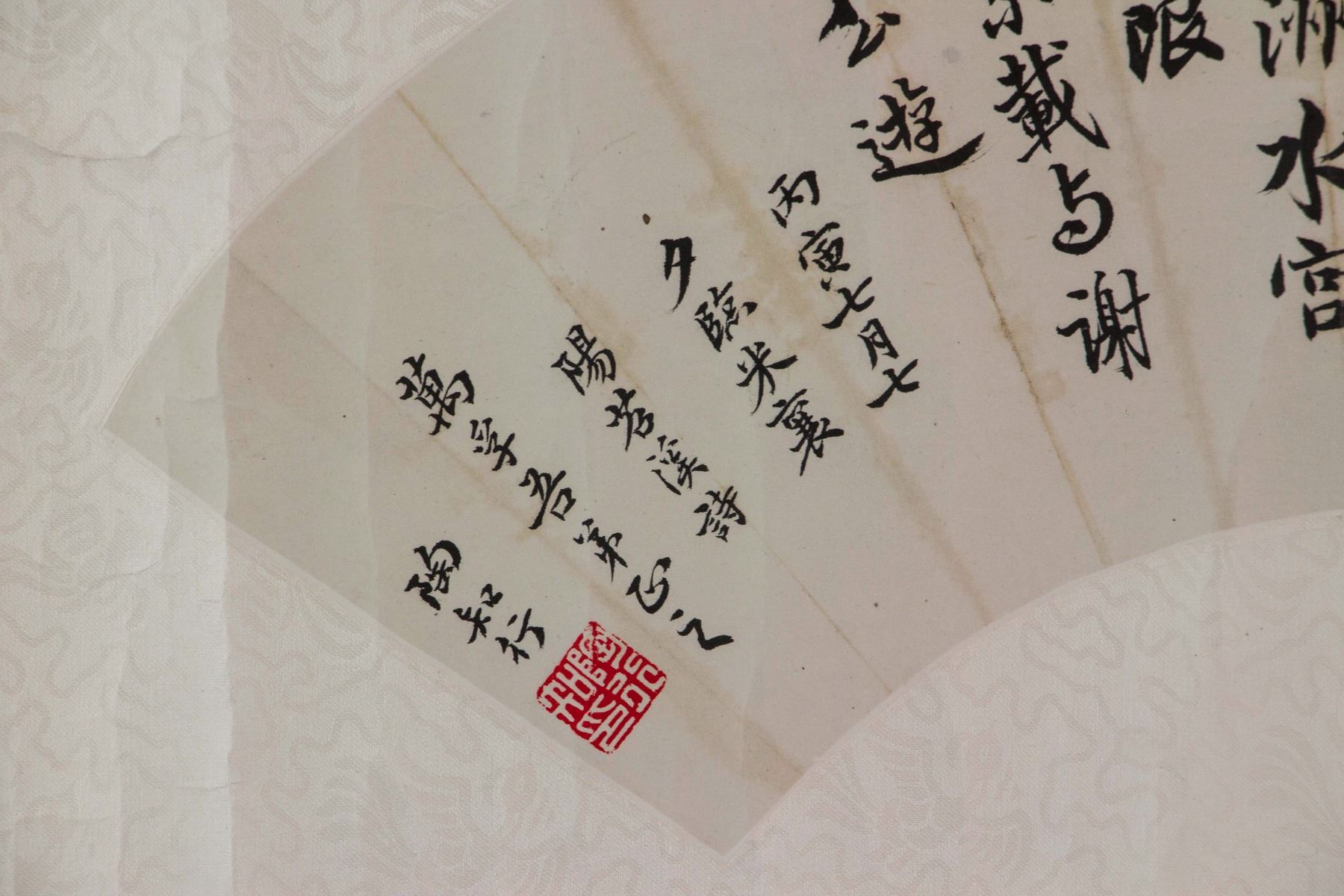 Chinese calligraphy in regular script; Chinese ink on fan shape paper; mounted on paper roll; signed Tao Xingzhi (1891-1946); inscribed with 1 seal; 54 cm x 21 cm