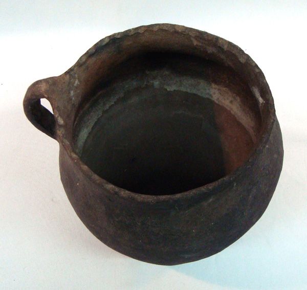 Taos Bean Pot. Measures approx. 6 1/2''H x 8 1/2''W. Micaceous clay in this bean pot.