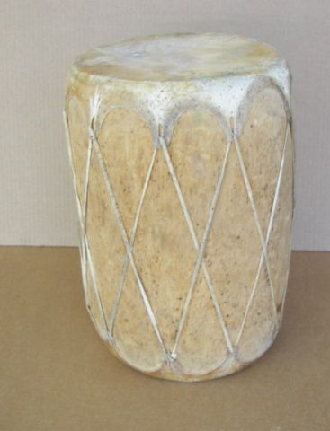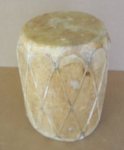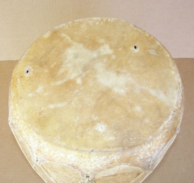 Taos Cochiti Drum, , Taos Cochiti Drum, , (7593) Taos Cochiti Drum Rawhide Head Cottonwood Body, 16" Tall X 11" Diameter, 2 Small Holes In Head One Side