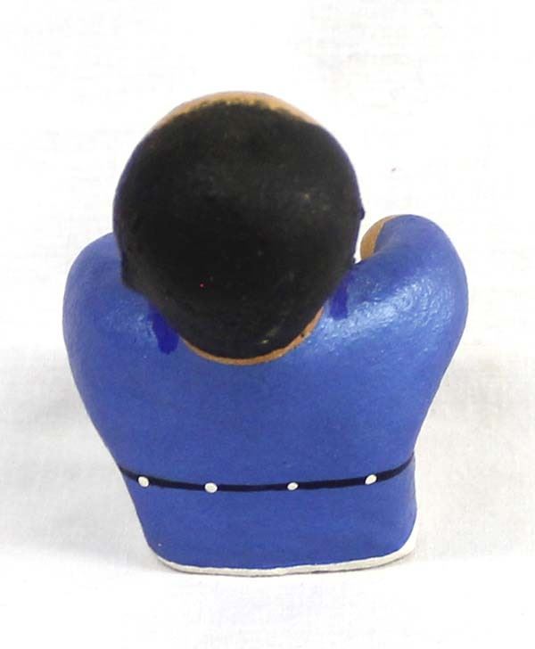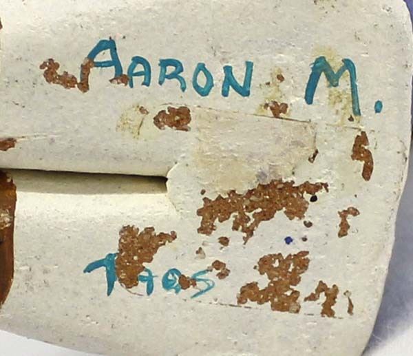 Native American Taos Micaceous Clay Pottery Storyteller by Aaron Mirabel, measures 2'' x 3'' x 2.5'' and is signed on the bottom, shelf wear on the bottom