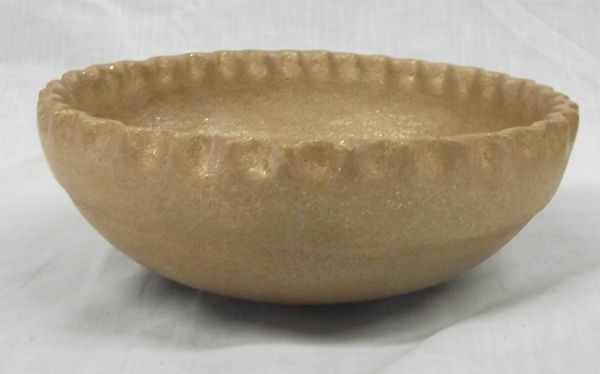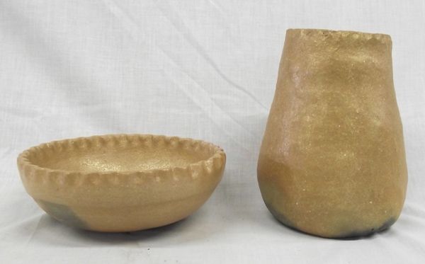 Taos Micaceous Jar and Bowl, #1 is the largest and measures 7 3/8''H x 5 .25''W, tall jar with fluted rim and has fire clouds on bottom #2 is a fluted rimmed bowl with fire clouds and is signed on bottom D. Carrillo
