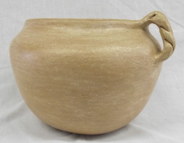 From the Collection of Nick and Suzanne Nicholas. Taos Micaceous Pottery by Rose Naranjo, measures 9.5 in. x 6.5 in., braided handle, Rose Naranjo (Santa Clara) was born in 1917, married Michael Naranjo, a Southern Baptist minister, when she was 18, and for the next 27 years they lived at Taos which is where she learned to make micaceous pottery of the Taos Pueblo style. Among her children and grandchildren are Jody Folwell, Michael Naranjo, Edna Romero, Rina Swentzell, Nora Naranjo-Morse, Susan Folwell, Roxanne Swentzell and others, all of whom are accomplished artists. Rose was one of the artists included in the exhibit ''Lost and Found Traditions: Native American Art 1965-1985'' organized by the American Federation of Arts. Rose was honored as a Santa Fe Living Treasure in January, 1994.