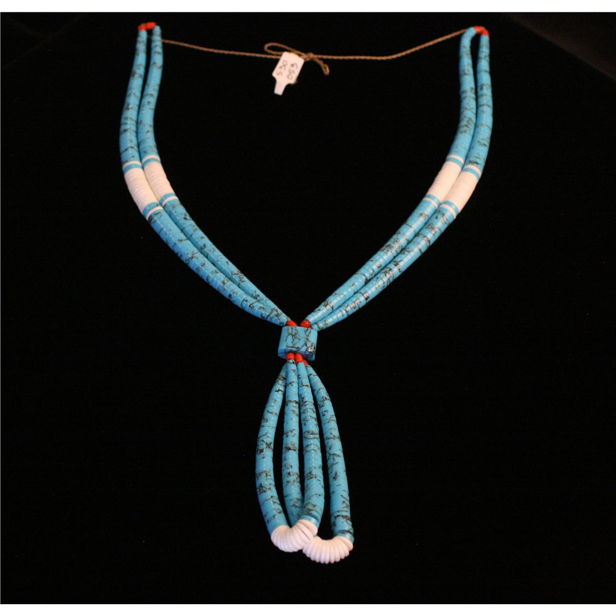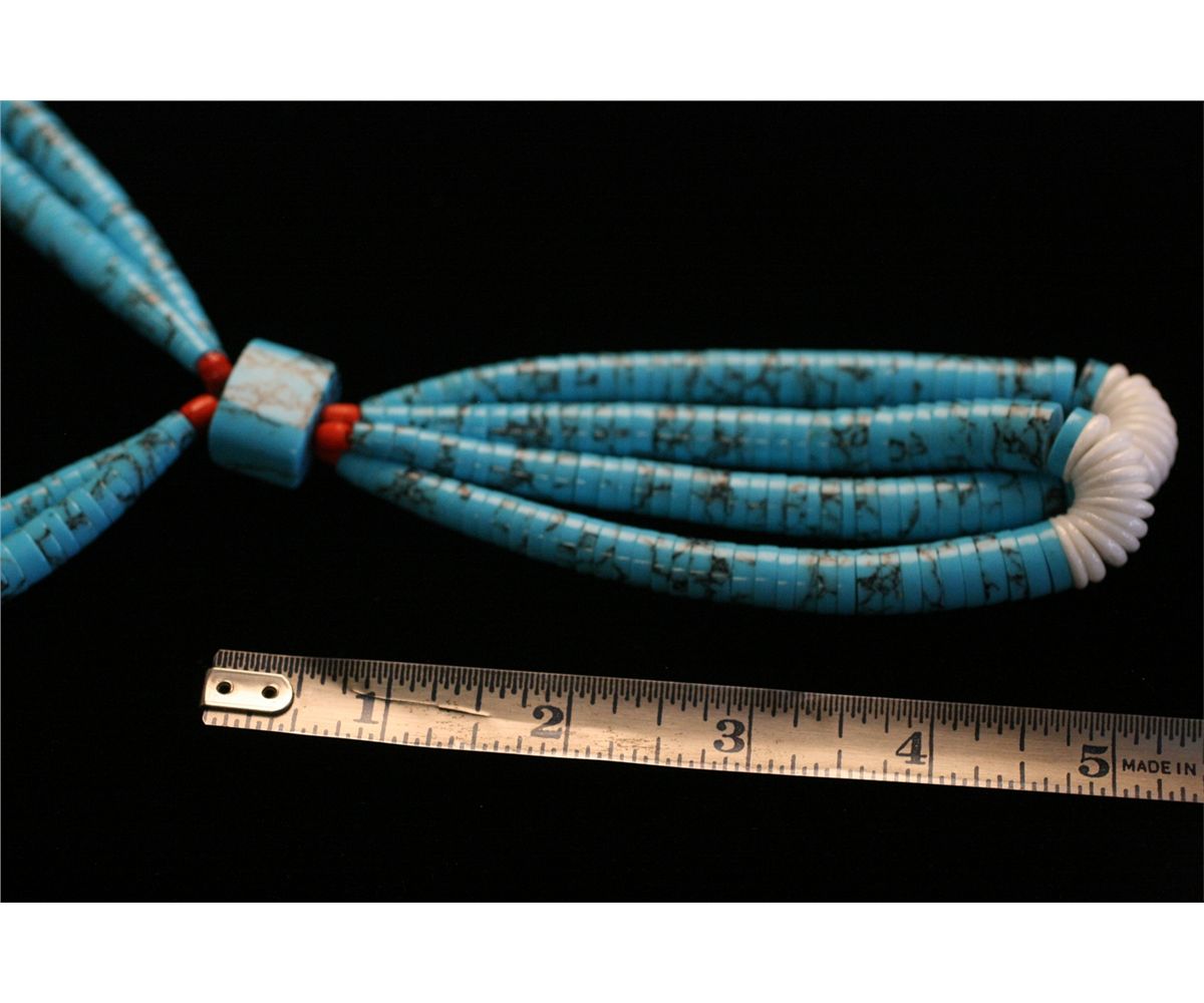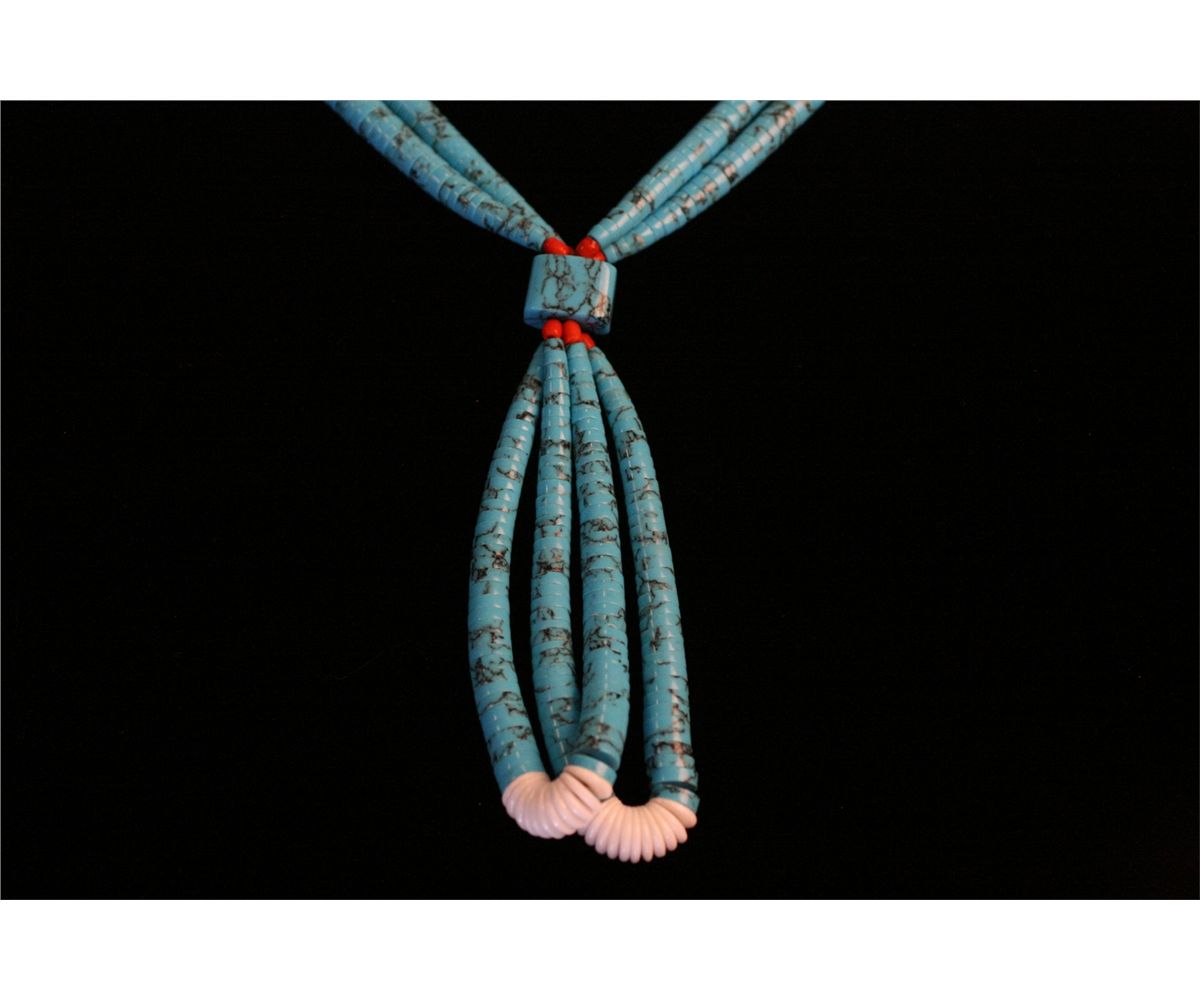 Tapered Turquoise and Shell Disc Necklace, Pair of jaclas 20" long with 4" jacla drop, -530053-