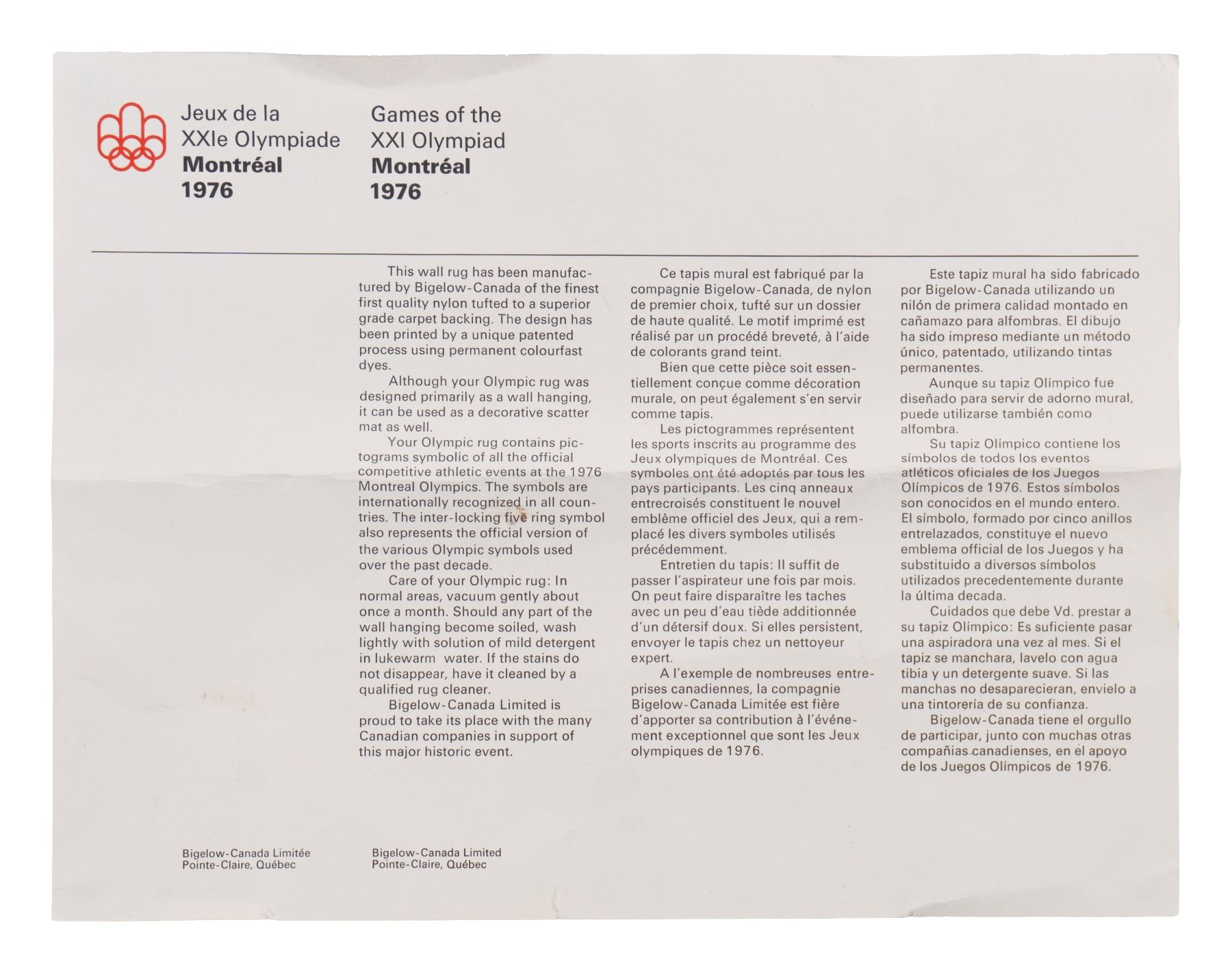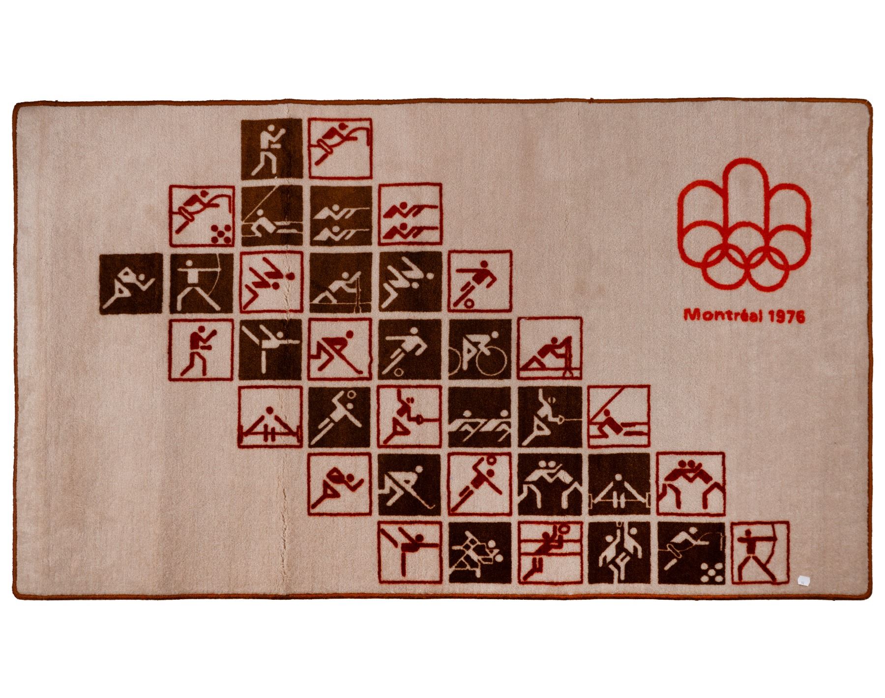 Nylon wall mat, sports pictograms and 5-ring symbol, Provenance Jean Drapeau Estate \ Librairie Bonheur d'occasion