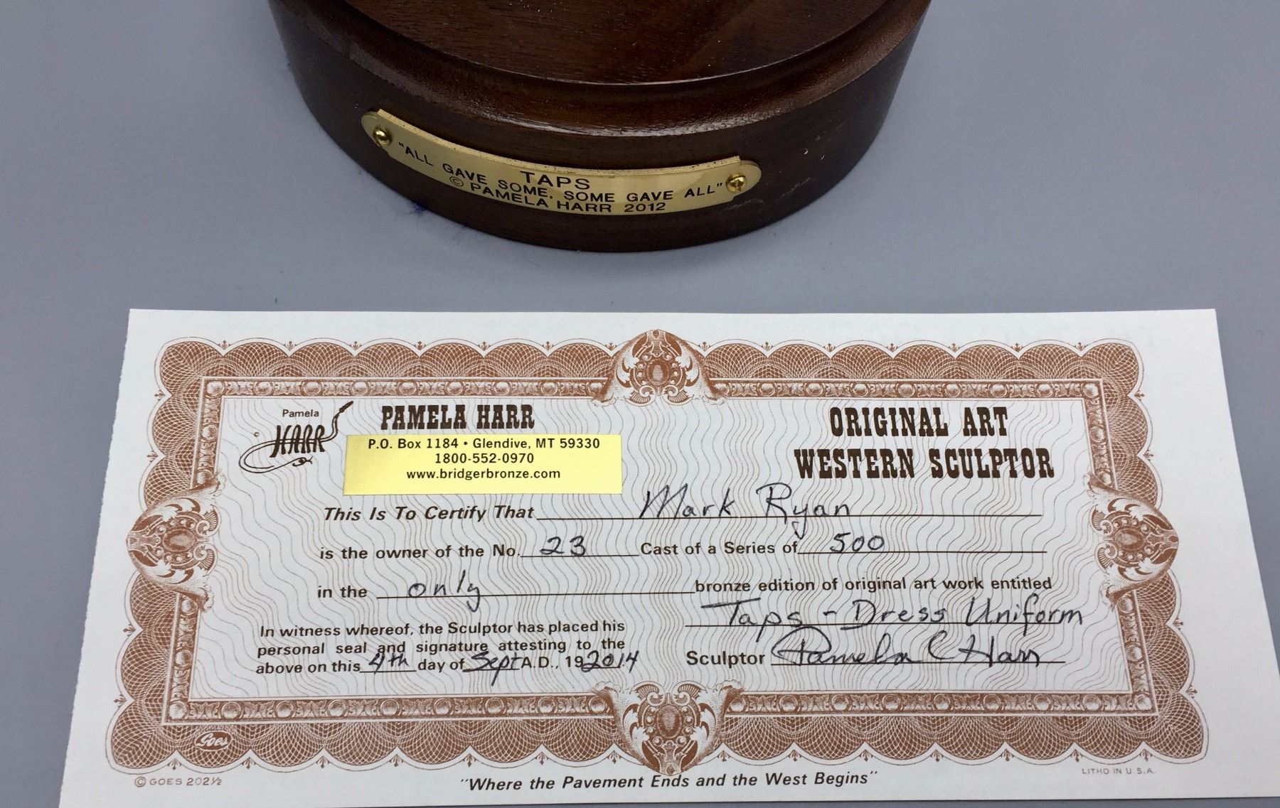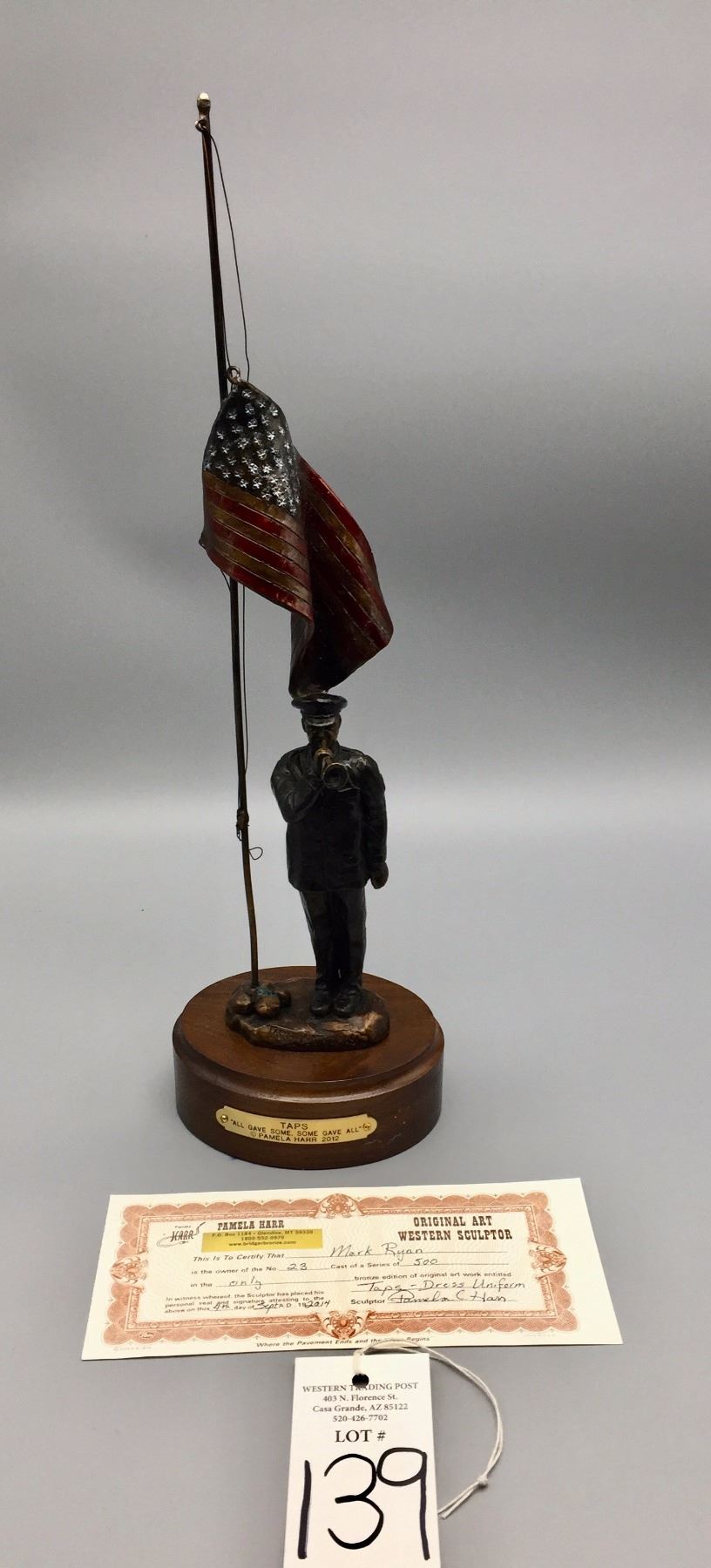 Maker: Pamela Harr, wife of Harvey Rattey. Approx. Age: 2012. Size: Stands 17” tall. Additional Info: # 23/500. Purchased in 2014 and has been in storage since. Check out BridgerBronze.com for more info. Condition: Like new. Please look closely at the pictures - they are an important part of our description. Shipping: There will be a $10 handling / packaging fee for shipping this lot. The actual cost of postage will be added on top of that.
