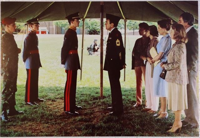 Taps (20th Century Fox, 1981) lobby card. Drama. Starring George C. Scott, Timothy Hutton, Sean Penn, Ronny Cox, Tom Cruise, Brendan Ward, Evan Handler, John P. Navin Jr., Billy Van Zandt, Giancarlo Esposito, Donald Kimmel, Tim Wahrer, Wayne Tippit. Directed by Harold Becker. Mint. (11"x14").