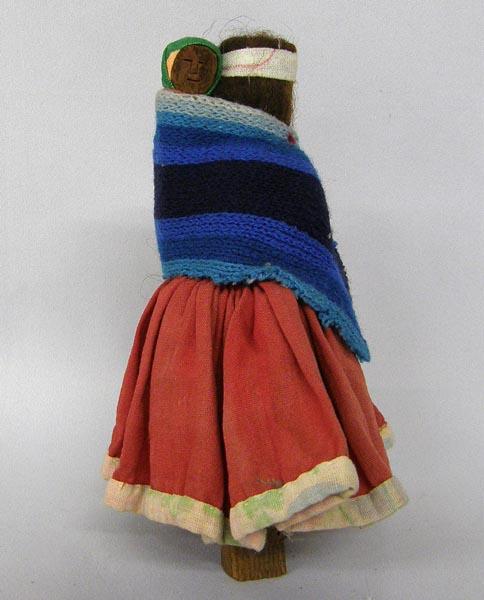 Tarahumara Vintage Wooden Doll with Baby. Measures approx. 6.5''Hx1.5''W. Buyers Pay Actual Shipping and Handling Charges(see terms and conditions for more information)
