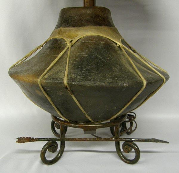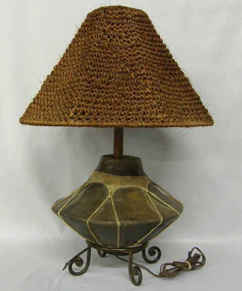 Tarahumara Pot Lamp (on stand) with Macrame Jute Shade. Does work. Measures approx. 27''H, with shade, and 19''W. Buyers Pay Actual Shipping and Handling Charges(see terms and conditions for more information).