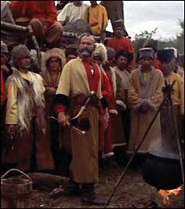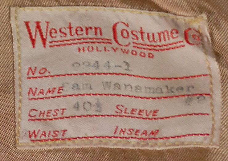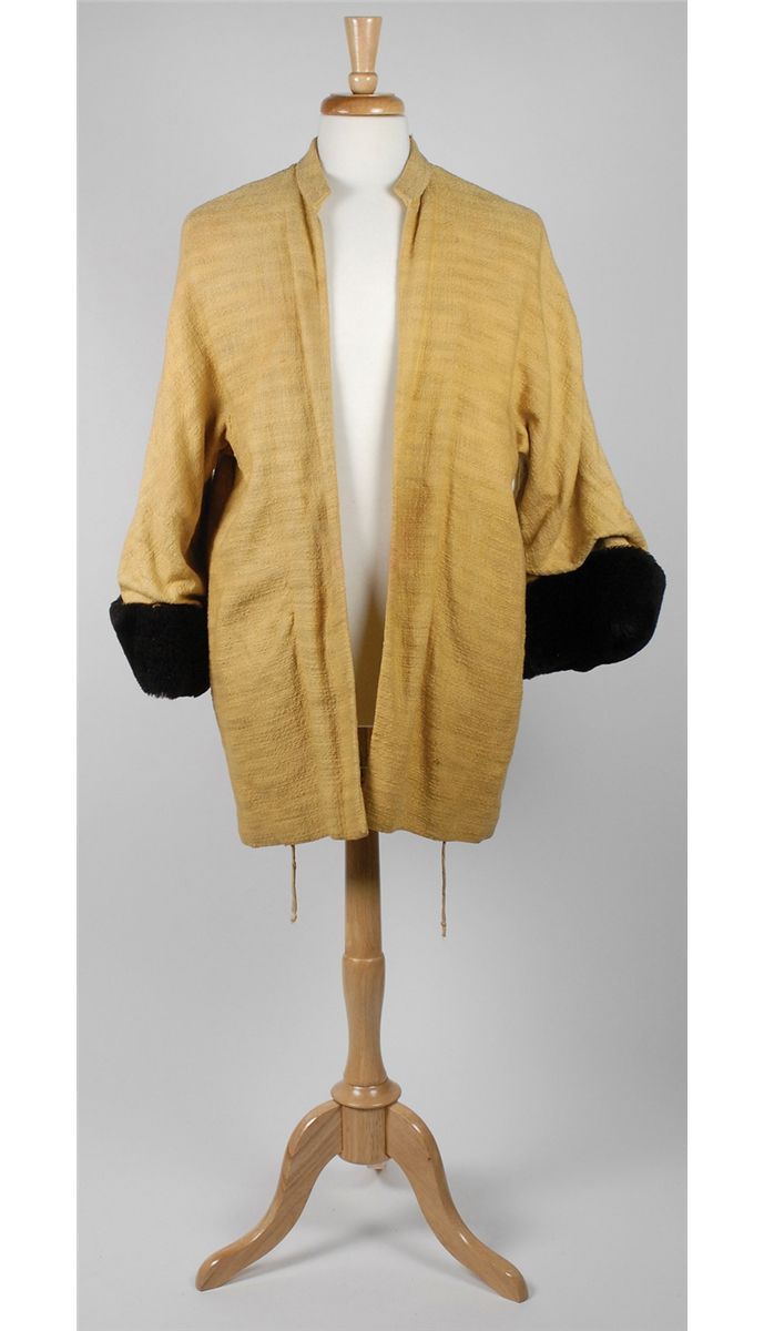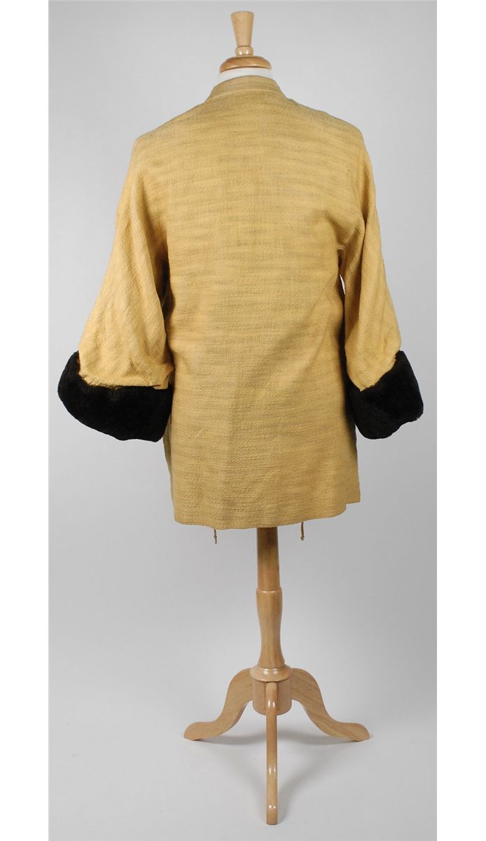 Screen-worn tunic worn by Wanamaker in the role of Filipenko in the 1962 adventure classic Taras Bulba co-starring Tony Curtis and Yul Brynner. Yellow wool tunic features tie at the neck, fur cuffs, and a Western Costume Co. tag sewn into the lining, with Wanamaker’s name typed on the second line and a production number on the first line. In fine condition.