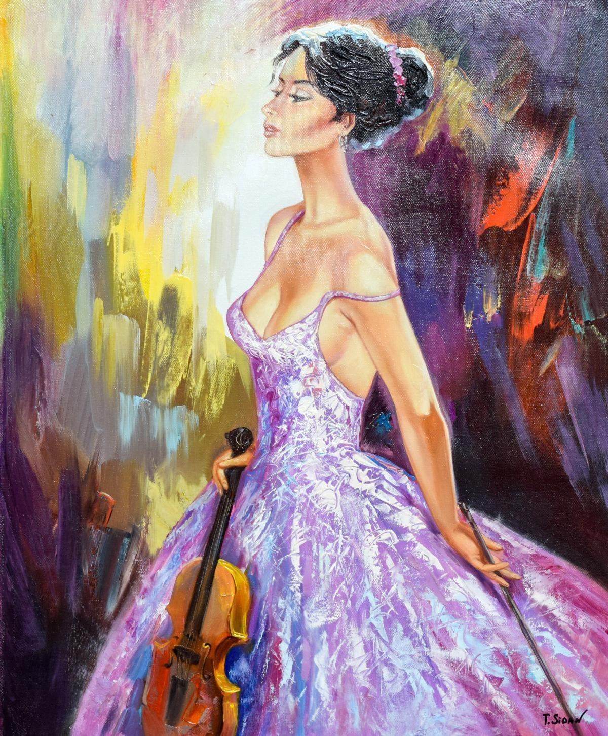 Artist: Taras Sidan. Medium: Original Oil on Canvas. Title: Before The Show. Size (Unframed): 24" x 20". Size (Framed): 33" x 28.5". Certificate of Authenticity: From the publisher. Reference# 11490.