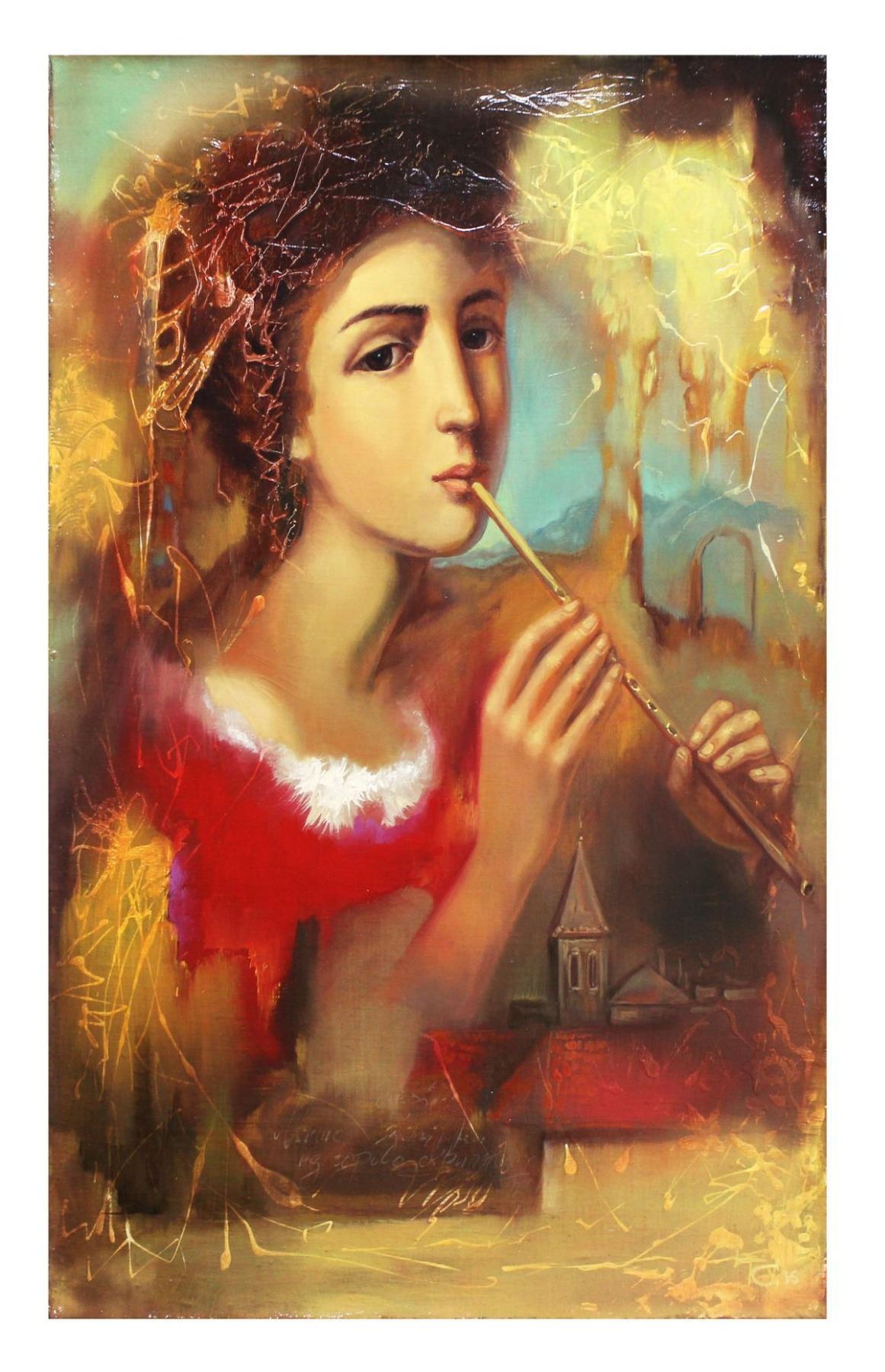 Artist: Taras Sidan. Medium: Original Oil on Canvas. Title: Musician. Size (Unframed): 20" x 16". Certificate of Authenticity: From the publisher. Reference# 10074.