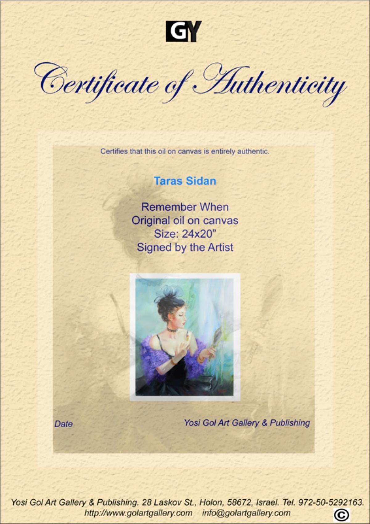Artist: Taras Sidan. Medium: Original Oil on Canvas. Title: Remember When. Size (Unframed): 24" x 20". Certificate of Authenticity: From the publisher. Reference# 10305.