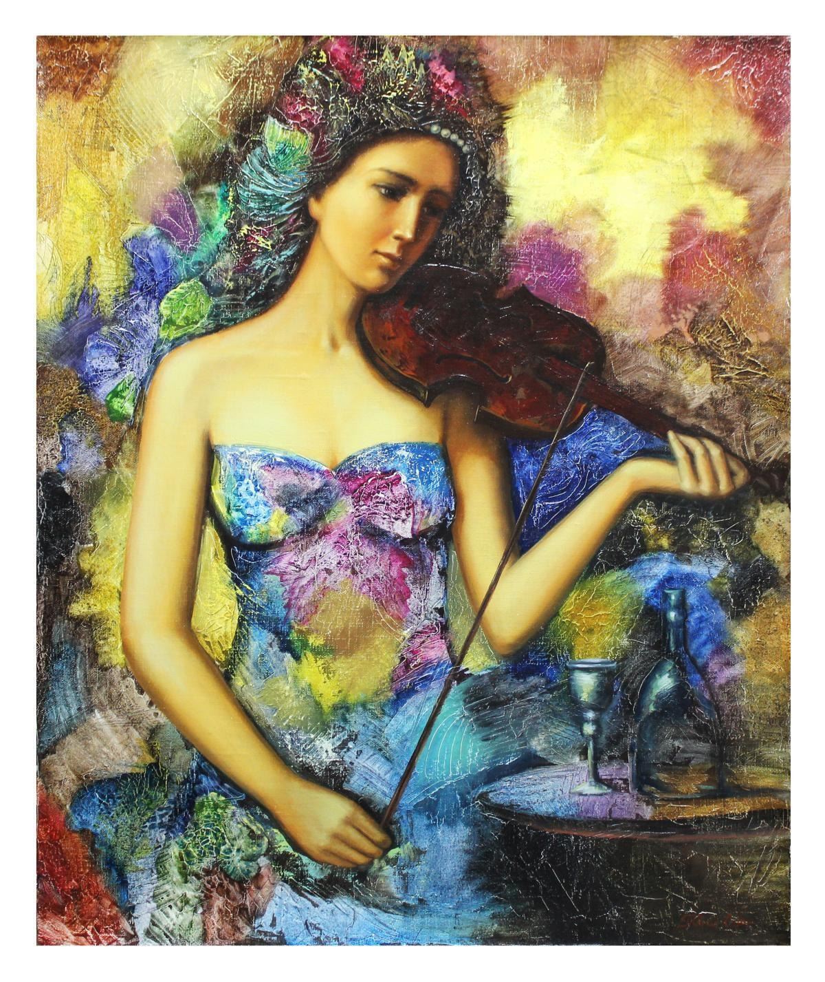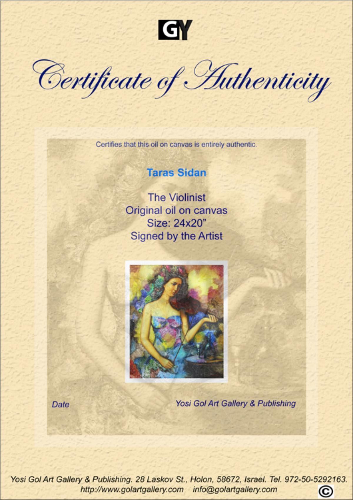Artist: Taras Sidan. Medium: Original Oil on Canvas. Title: The Violinist. Size (Unframed): 24" x 20". Certificate of Authenticity: From the publisher. Reference# 10072.