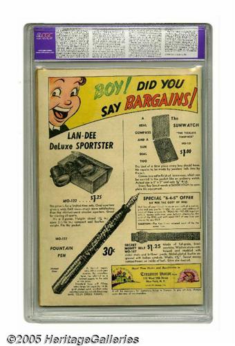 50. Auctioneer offers no opinion as to the validity of a grade assigned by any third-party grading service. Since we cannot examine C.G.A. encapsulated notes or Comics Guaranty Corporation (CGC) encapsulated comics, they are sold "as is" without our grading opinion, and may not be returned for any reason. Auctioneer shall not be liable for any patent or latent defect or controversy pertaining to or arising from any encapsulated collectible. In any such instance, purchaser's remedy, if any, shall be solely against the certification service certifying the collectible.