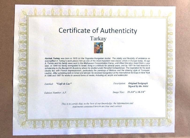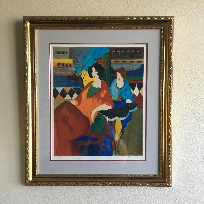 Tarkay- Framed Lithograph-Signature ''''Café de Luc''''