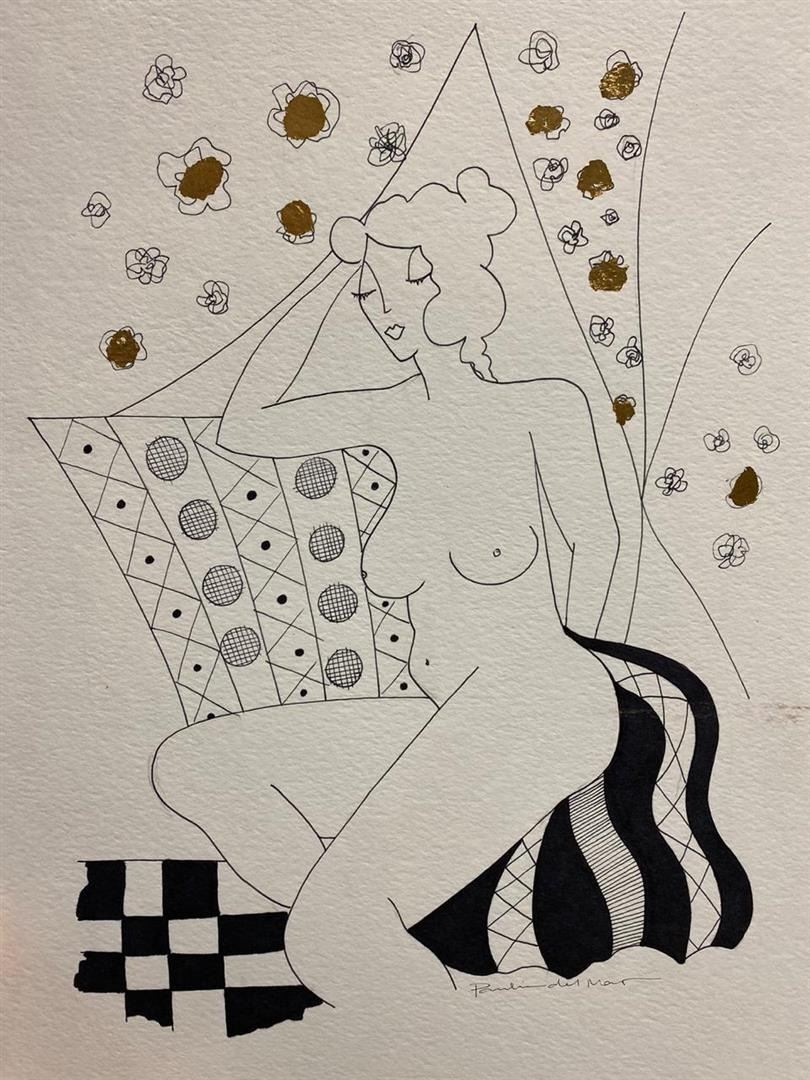 Tarkay Lady 10 by Del Mar, Paulina. Original One-of-a-Kind Hand Signed Pen and Ink. Dimensions: 15 x 11. Excellent Condition.