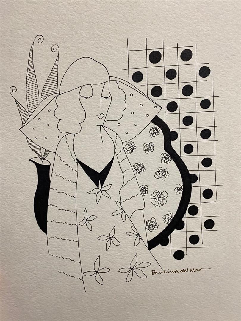 Tarkay Lady 6 by Del Mar, Paulina. Original One-of-a-Kind Hand Signed Pen and Ink. Dimensions: 15 x 11. Excellent Condition.