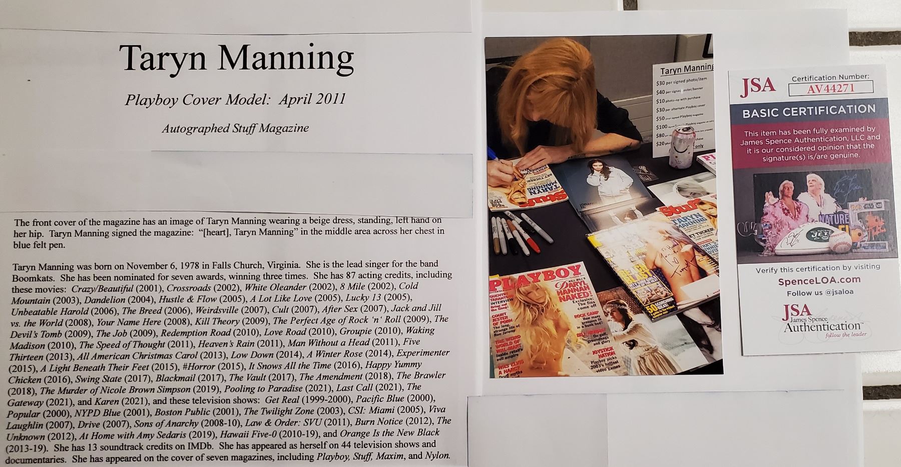 Signed Stuff Magazine. JSA COA. Photo proof.
